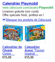 Les annonces pour une offre de produit, comme les extensions de produit, font partie des annonces produit AdWords. Grâce à ce type d'annonce, les internautes voient les produits que vous proposez avant même de se rendre sur votre site. Ainsi, vous enregistrez davantage de clics, attirez des prospects plus intéressants et obtenez un meilleur taux de conversion ainsi qu'un ROI plus élevé sur le Réseau de Recherche.